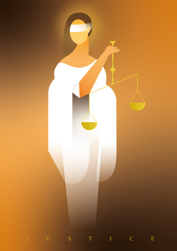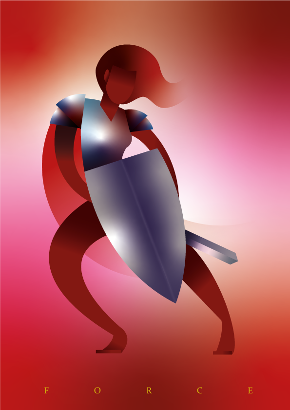 Série d'illustations vectorielles réprésentant les quatre vertus cardinales avec leurs attributs traditionnels